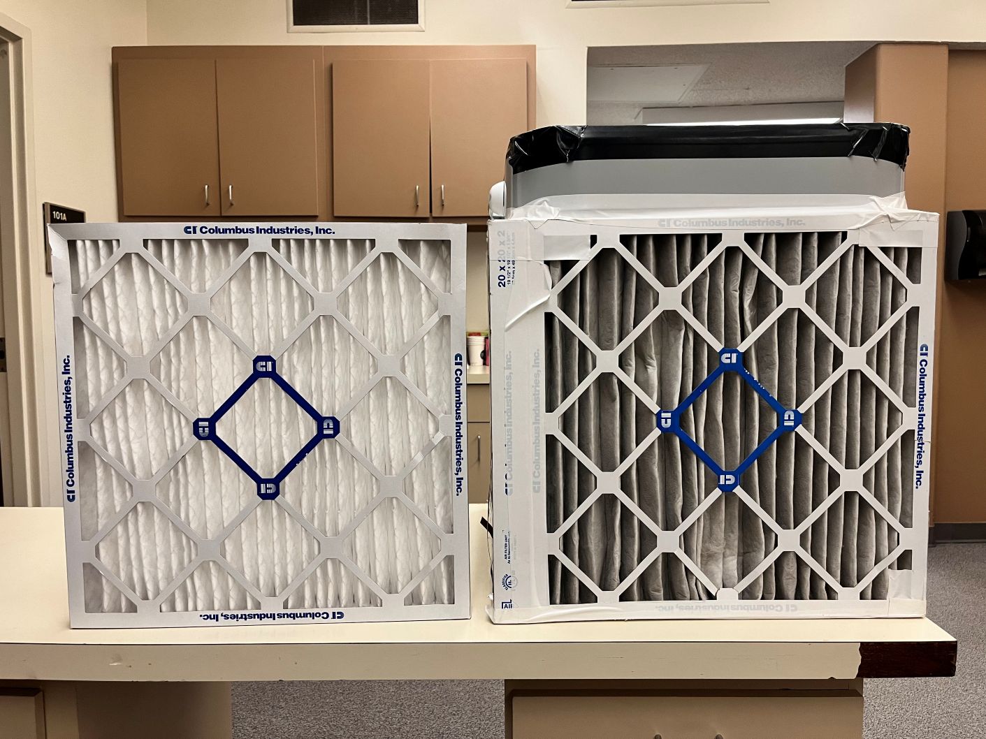 The image at right depicts CR box filters before and after providing air filtration for up to approximately 8 months. The four HVAC filters that form the sides of the box promote clean air until they start looking like the box on the right. The filters can, however, be swapped out easily. Reusing the same box fan and cardboard cutouts, new filters may be easily added to refresh the CR box.